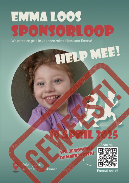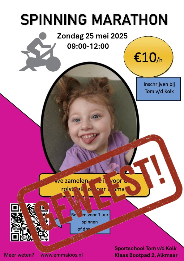 Om geld in te zamelen voor Emma organiseren we meerdere activiteiten. Zo zijn er binnenkort een spinning marathon en een motortocht, en was er op 19 April een sponsorloop.